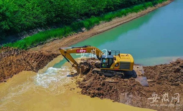記者在施工現(xiàn)場(chǎng)看到,隨著數(shù)臺(tái)挖掘機(jī)挖開(kāi)淠河總干渠的攔水圍堰,淠河總干渠的水緩緩流進(jìn)渡槽,“改道”渡槽,正式上跨引江濟(jì)淮運(yùn)河。