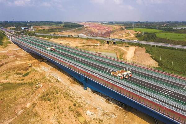 G312合六葉公路橋跨越引江濟淮航道,是國家重大跨省、跨流域調(diào)水工程——引江濟淮工程的重要組成部分。該橋為路改橋工程,在原有國道改航道的基礎(chǔ)上,建設(shè)鋼箱梁橋連接河堤兩岸。大橋全長540米、主跨180米,整橋鋼箱梁由4幅連續(xù)梁組成,橋面全寬52.5米,為雙向8車道。該橋的開通運行,為加快引江濟淮河渠剩余工程完成創(chuàng)造了施工條件。