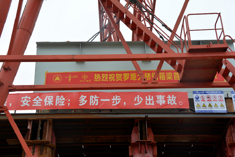 引江濟淮工程羅埠大橋首節(jié)段鋼箱梁成功架設(shè)