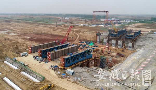 淠河總干渠鋼渡槽“水橋”橫跨引江濟(jì)淮主河道,兩條河道高差達(dá)30米左右,將形成“天河”與“地河”交叉的壯麗景觀。工程預(yù)計(jì)今年年底實(shí)現(xiàn)合攏,明年3月底將達(dá)到通水條件。